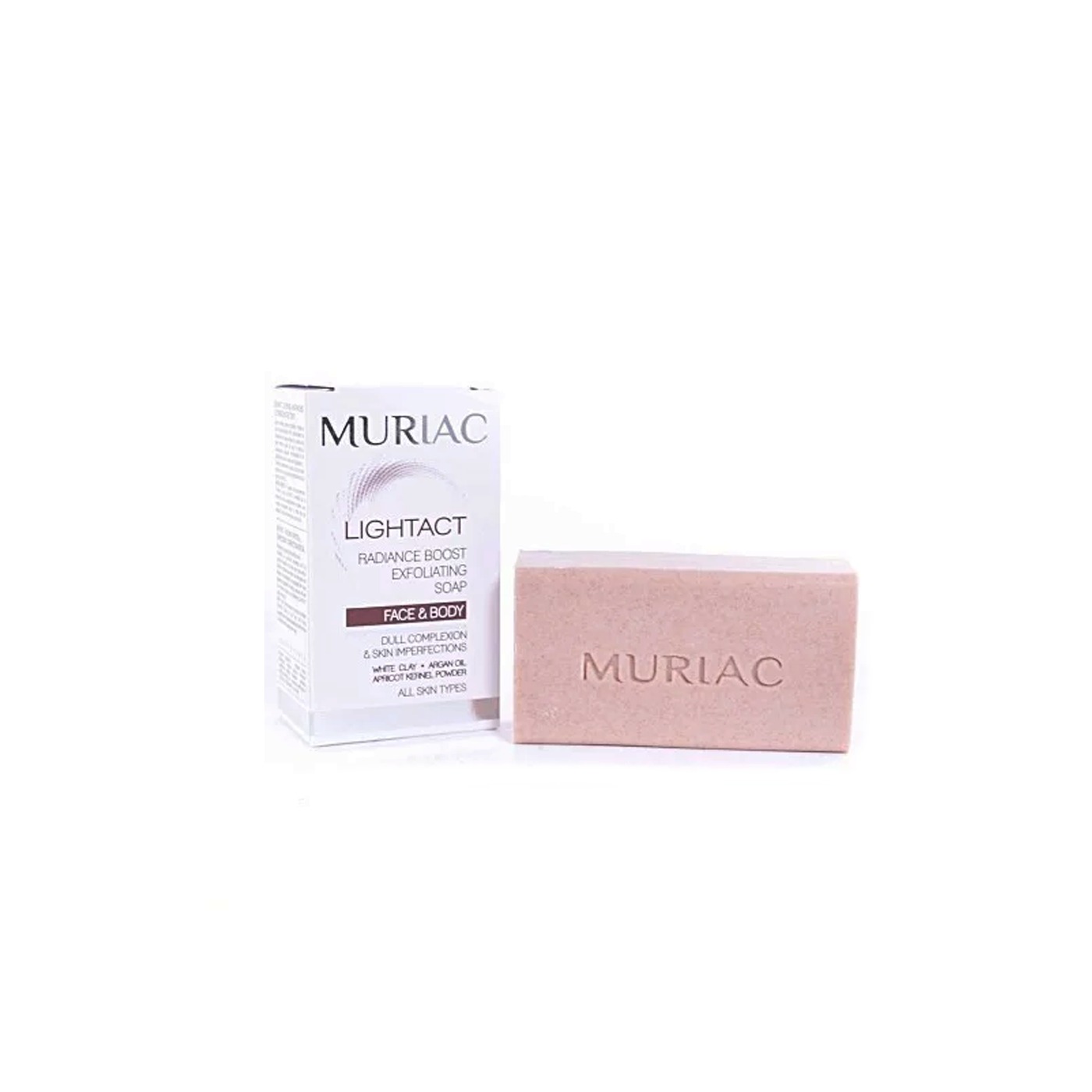 Muriac Lightact savon exfolie, purifie et clarifie la peau sans l’irriter, il affine le grain de peau et stimule également le renouvellement cellulaire.
